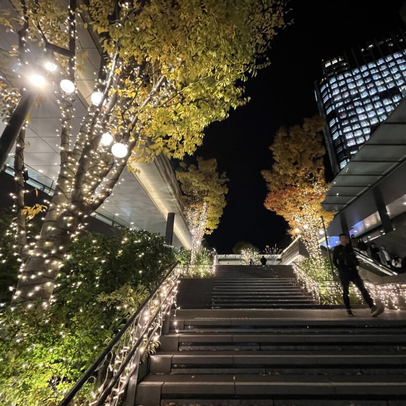 イルミネーションにより、夜間も美しく彩られています。(1階~2階にて撮影)