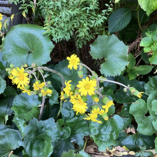 鮮やかな黄色の花と濃い緑の葉のコントラストに目を惹かれます。冷えゆく季節に陽だまりのような暖かみを感じさせてくれます。(1階にて撮影)