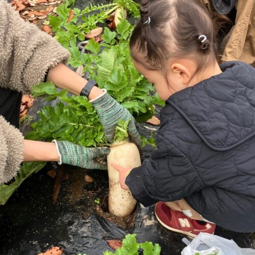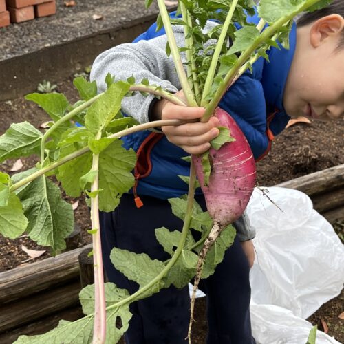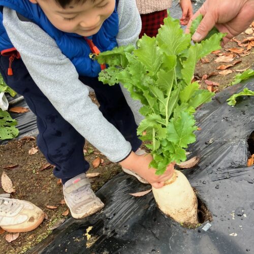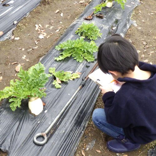9月に種まきした世田谷の大蔵原にゆかりのある地域野菜の”大蔵ダイコン”と
