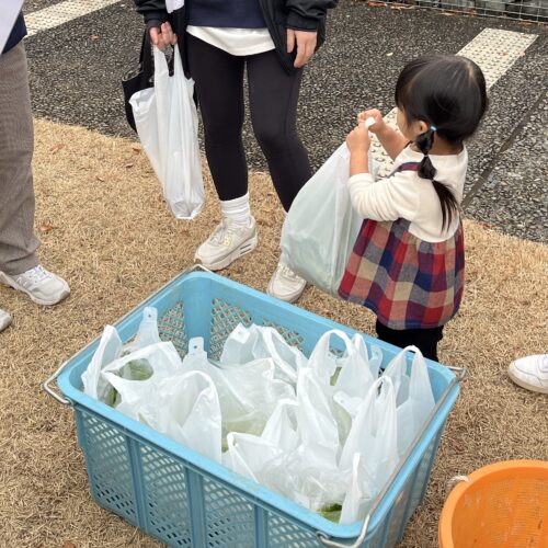 最後に、アンケートと引き換えに、イベントの前日に収穫したハクサイとキャベツも手渡されました。