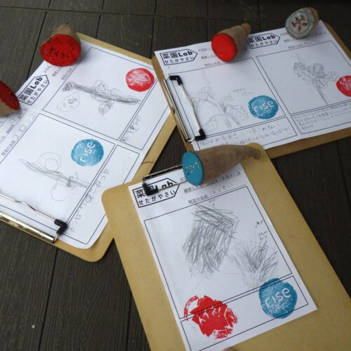 観察が終わった子供たちの観察シートには、サツマイモで作った”イイネ!”と”riseロゴ”のハンコが「終了の証」として押印されました。