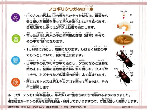 2026年2月1日 いきもの観察「ノコギリクワガタとコウチュウたち」