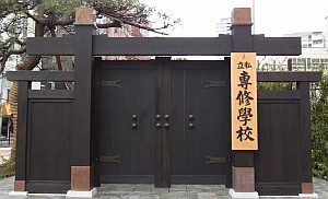 専修大学黒門の左横の歩道は、一般の方が通ることができる歩道です